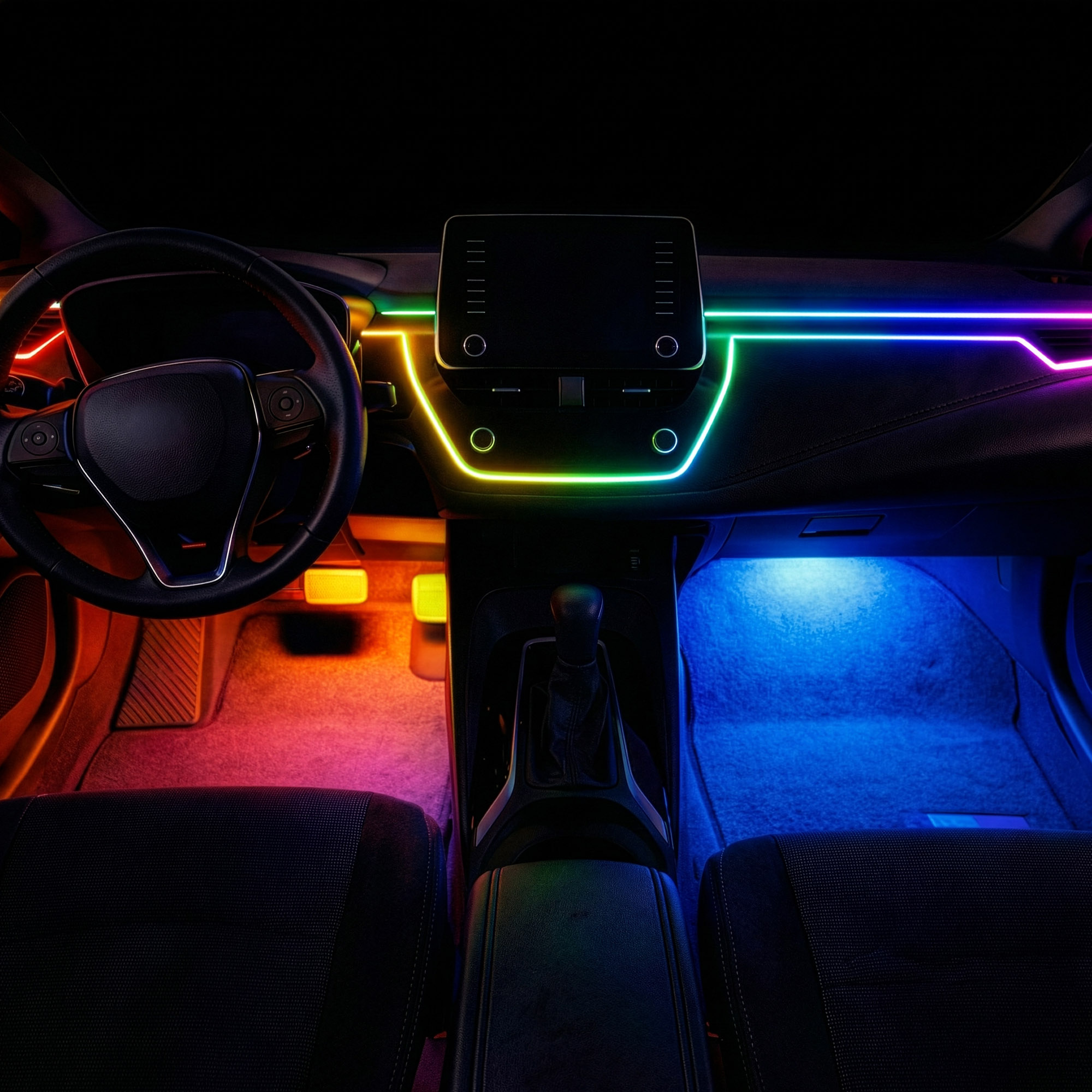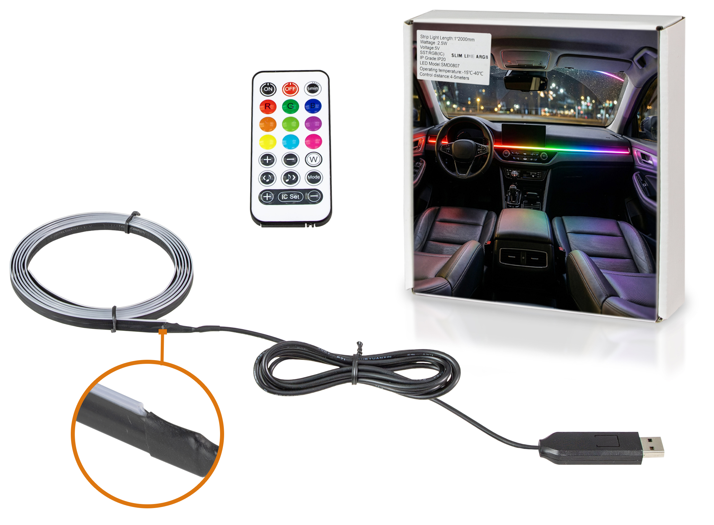 Dzięki bardzo cienkiej konstrukcji taśma ARGB idealnie nadaje się do montażu we wnętrzu pojazdu. Może zostać zastosowana w szczelinach deski rozdzielczej, przy tunelu środkowym, w drzwiach, pod fotelami lub w przestrzeni nóg. Pozwala stworzyć nowoczesne oświetlenie ambientowe inspirowane rozwiązaniami stosowanymi w samochodach klasy premium. Zasilanie przez USB umożliwia podłączenie bezpośrednio do portu USB w aucie lub do ładowarki samochodowej, bez konieczności ingerencji w instalację elektryczną pojazdu.